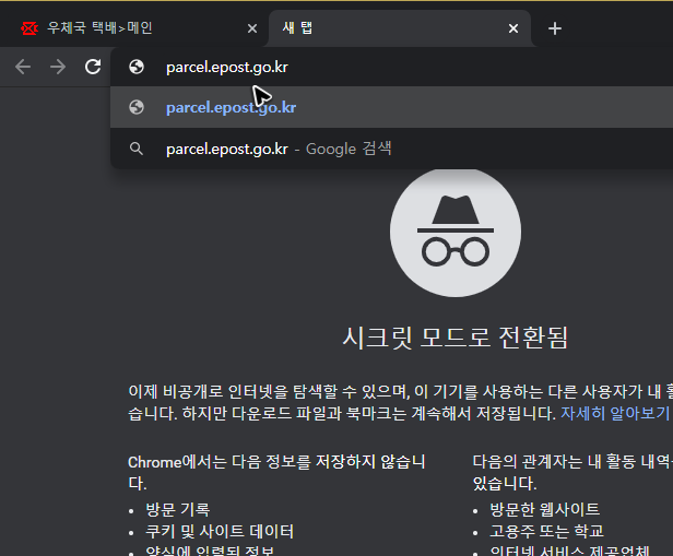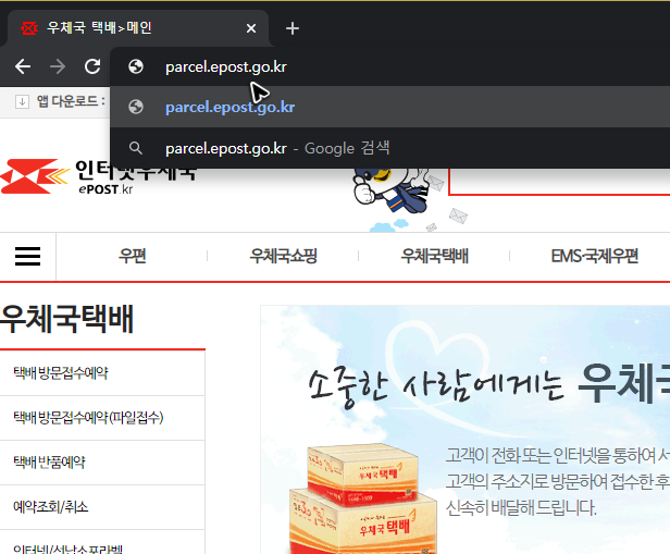 앞서 두 가지 방법이 있다는 얘기를 했었는데, 첫 번째 방법은 공식 홈페이지를 찾아가서 숫자를 입력해보는 것입니다. 포털에서 검색하면 찾아갈 수 있지만, [parcel.epost.go.kr]를 주소창에 입력해서 우체국의 택배를 조회하고 배송의 위치를 확인하는 것이 더 편해요.