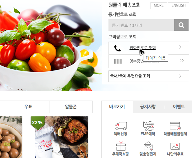 여담으로 홈페이지의 구성을 보셔서 아시겠지만, 해당 페이지를 통해 우체국 택배를 조회만 하는 것이 아니라 다양한 정보들을 둘러볼 수 있어요.