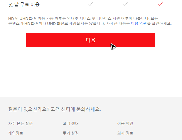 우선 최초 사용자는 한 달 동안 스트리밍 사이트를 사용하는데 아무런 제한이 없습니다. 한 달이 끝나기 전에 미리 알림을 주니 이 부분부터 잘 공략(?)해서 넷플릭스의 요금제와 가격을 피해가는 것을 권장합니다.