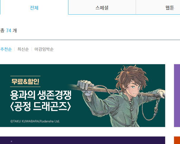 좌우간, 카테고리 메뉴를 누르면 지금 진행되고 있는 여러 종류의 이벤트가 보이는데, 여기에서 할인에 대한 내용도 있고, 아니면 특정 만화는 완전히 무료로 볼 수 있는 쿠폰도 있습니다. 비록 기간을 정해서 모든 작품을 대상으로 한 미스터블루 만화의 무료쿠폰은 아니지만, 이 부분을 수시로 확인하면서 챙길 수 있는 혜택을 챙긴다면 여러모로 요긴할 거예요.