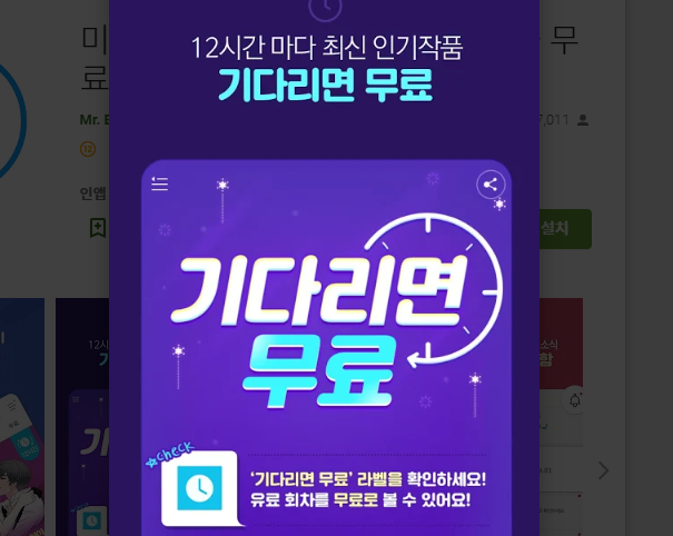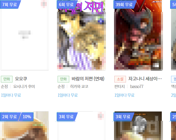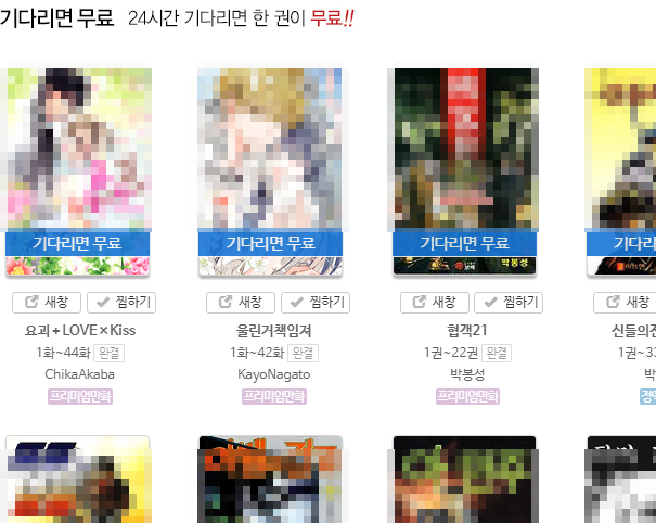 여기에서도 미스터블루의 만화와 마찬가지로 한 권을 읽은 뒤에 하루가 지나면 다시 다음 한 권을 읽을 수 있는 책들이 많습니다. 동시에 여러 만화책을 읽으면서 각각의 내용에 몰입할 수 있는 실력(?)을 갖고 계신 분들이라면 이런 기다리면 공짜가 되는 책들을 무조건 공략하는 것이 좋은 선택이 아닐까 해요.