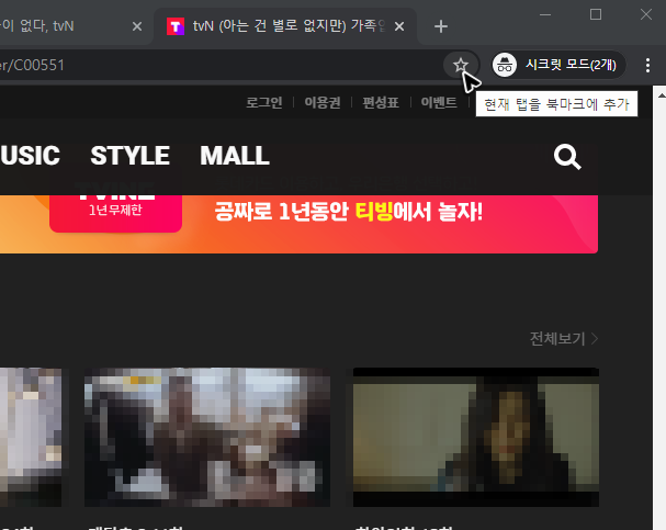 그리고 혹시 평소에 tvn 온에어의 무료를 시청하기 위해서 자주 사이트를 찾는다면, 매번 검색해서 사이트를 찾아가는 것보다 북마크를 추가해서 찾아가는 것이 더 편할 수 있습니다. 북마크에 사이트를 추가하고 싶을 땐, 우측 상단의 별표를 누르고 이름을 정한 뒤 확인을 눌러주세요.