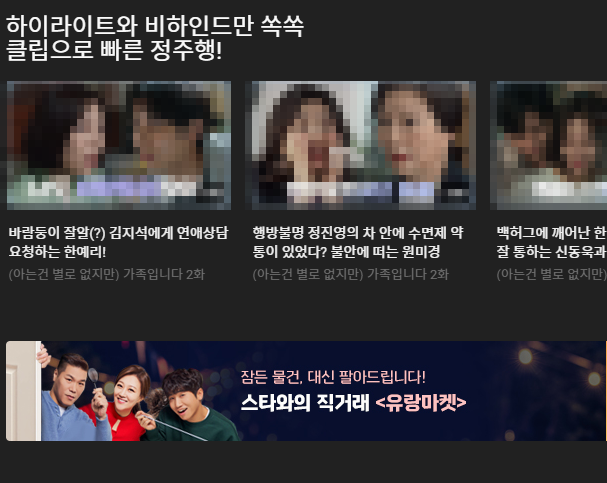 방송된 프로그램에서 인기장면을 따로 모아둔 곳도 있고, 아니면 tvn 온에어로는 볼 수 없는 이미 지나간 방송에 대한 내용들도 나오는데, 이 부분도 tvn에서 당장 볼만한 프로그램이 없을 때 둘러보시고 스트리밍을 해보시면 좋을 것 같아요.