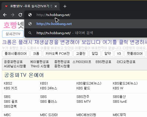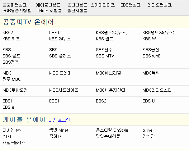 이미 알고 계시겠지만, 이렇게 tvn 온에어를 통해서 실시간 스트리밍을 하는 것처럼 다른 채널 역시 온에어를 활용하면 방송중인 프로그램을 시청하는 것이 가능합니다. 그런데 다른 채널 사이트를 찾아가는 것도 귀찮을 수 있어요. 그래서 저는 아래 그림의 주소를 찾아갑니다.