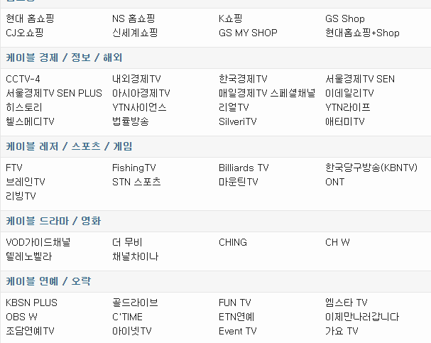 표 안에 여러 종류의 채널들이 정리되어 있는 것을 보실 수 있을 거예요. 여기에서 스트리밍을 하고 싶은 채널을 클릭하면 됩니다. 그럼 tvn 온에어의 무료를 본 곳과 비슷한 플레이어가 있는 곳으로 빠르게 이동할 수 있습니다.