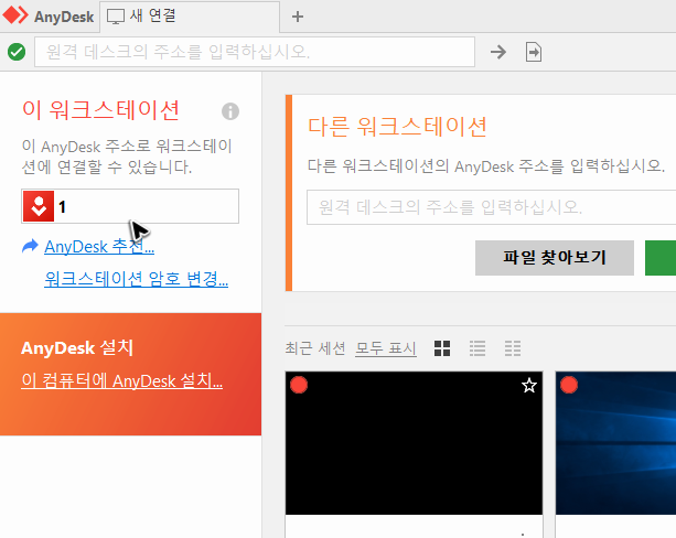 이제 파일을 받았으니 실행하면 됩니다. 별도로 설치할 필요가 없는 원격 데스크톱 프로그램이기 때문에 바로 메인 화면을 볼 수 있을 거예요. 이런 부분은 확실히 편한 것 같습니다. 물론 팀뷰어도 포터블은 있지만, 따로 구해야 한다는 것을 생각해보면 이 프로그램으로 연결하는 것이 더 편하긴 한 것 같아요.