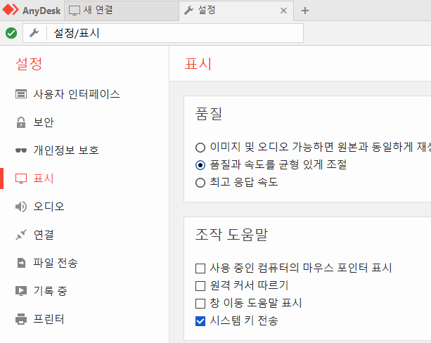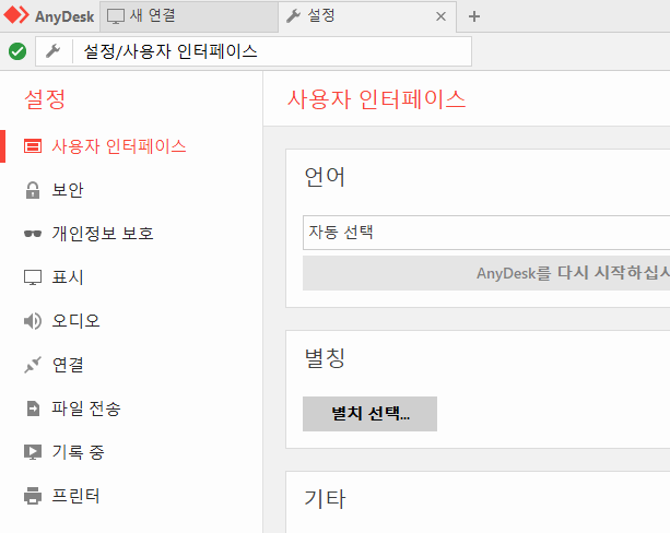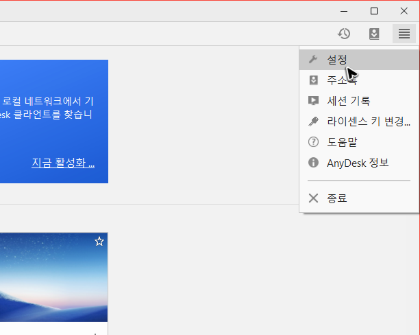 이렇게 가장 기본적인 기능만 알아도 애니데스크의 다운로드와 활용에 아무런 문제가 없을 거예요. 다만, 유저 설정을 변경하고 싶다면, 우측 상단의 메뉴를 누르면 됩니다.