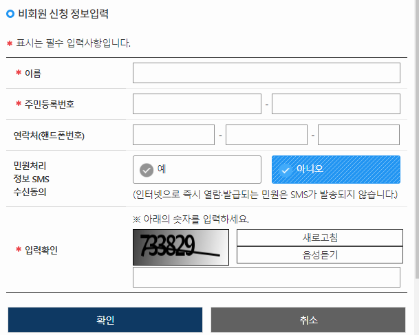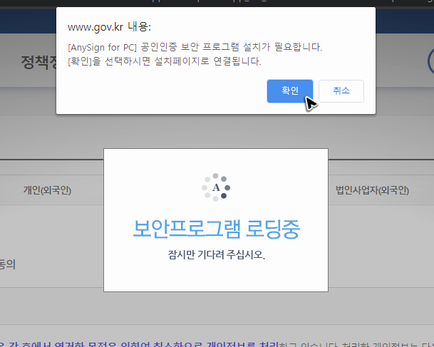 처음으로 전자민원24시의 홈페이지를 이용하면 보안모듈에 대한 내용이 나올 거예요. 알림 상자에 있는 취소 버튼을 누르면 보안모듈을 준비하지 않고 과정들을 진행할 수 있지만, 안전한 사이트 활용을 위해서는 귀찮더라도 보안모듈을 설치하는 것이 좋습니다.