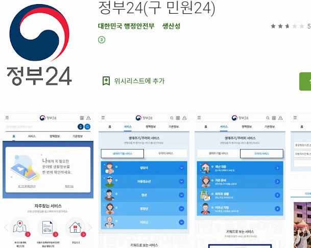 그리고 지금까지는 컴퓨터에서 전자민원24시를 찾아가는 과정을 정리했는데, 혹시 스마트기기에서 작업을 하신다면, 앱을 설치해서 사용할 수도 있습니다.