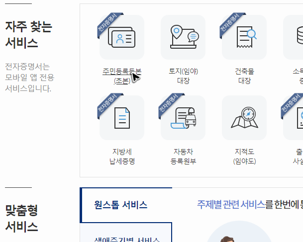그리고 이번 글에서는 주로 인증서 발급에 대한 얘기를 정리했지만, 사이트 메뉴를 확인해보시면 인증서 외에 주민센터를 통해서 처리해야 했었던 다양한 업무들을 처리할 수 있습니다.