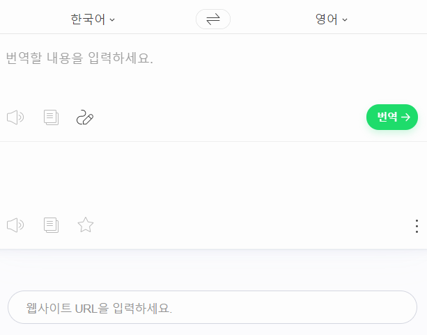 검색하거나 주소를 입력해서 사이트를 찾아가면, 두 개의 빈 상자가 보이고, URL을 입력하는 곳도 보입니다. 이렇게 네이버 번역기 파파고의 바로가기를 한 뒤에 사이트의 내용을 해석할 계획이셨다면 아래쪽 URL을 적는 곳에 페이지 주소를 입력하면 되고, 문장을 변환하고 싶었다면 위쪽에 있는 빈 상자에 내용을 입력하시면 됩니다.