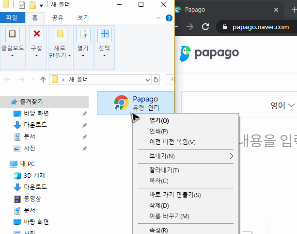 아니면 새 브라우저를 띄우면서 바로 네이버 번역기 파파고의 바로가기가 되는 버튼을 만들어서 사용할 수도 있는데, 혹시 이 버튼을 만들고 싶다면 사이트를 띄우고 브라우저 크기를 조금 줄여주세요.