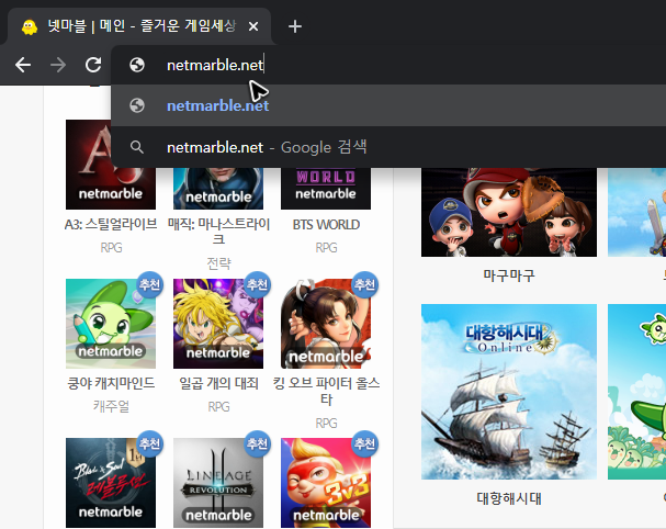앞에서 얘기를 했듯이 그냥 공식 홈페이지를 찾아가면 됩니다. 워낙 덩치(?)가 큰 곳이라 검색하면 빠르게 찾아갈 수 있지만, 다시 검색하시는 것은 귀찮을 수 있으니, 그냥 [netmarble.net]를 주소창에 입력해서 넷마블의 장기로 바로가기를 해주세요.