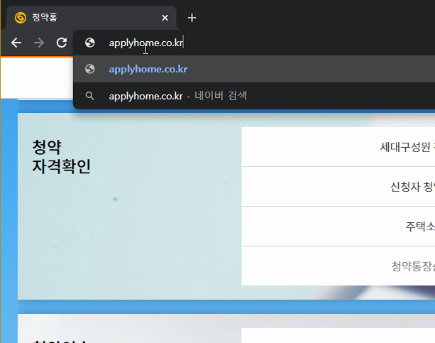 우선 찾아가는 것부터 얘기를 하자면, 비밀스럽고 조용하게 관리되는 사이트가 아니기 때문에 그냥 검색하면 됩니다. 아니면 브라우저에 [applyhome.co.kr]를 입력한 뒤에 청약홈의 홈페이지와 사용하는 방법을 알아보시는 것도 괜찮아요. 이 글을 읽기 위해서 이미 검색을 한 번 하셨을 테니, 아마도 주소 입력이 조금이나마 간편한 루트겠죠?