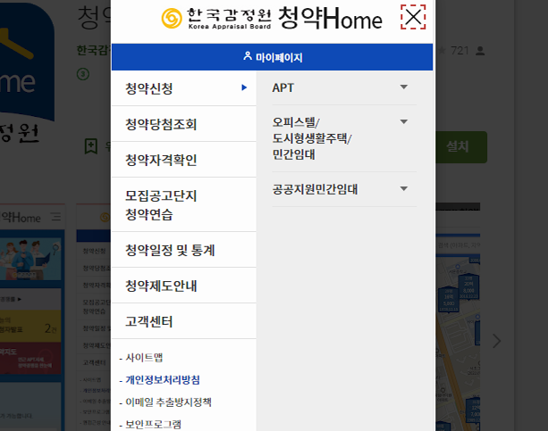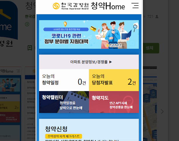 여담으로 지금은 사이트를 기준으로 청약홈에 대해 얘기를 했지만, 플레이스토어를 열고 검색하면 전용 앱도 있으니 활용하시면 될 것 같습니다. 화면 구성은 조금 다르지만 메뉴 종류와 정보는 동일해요.